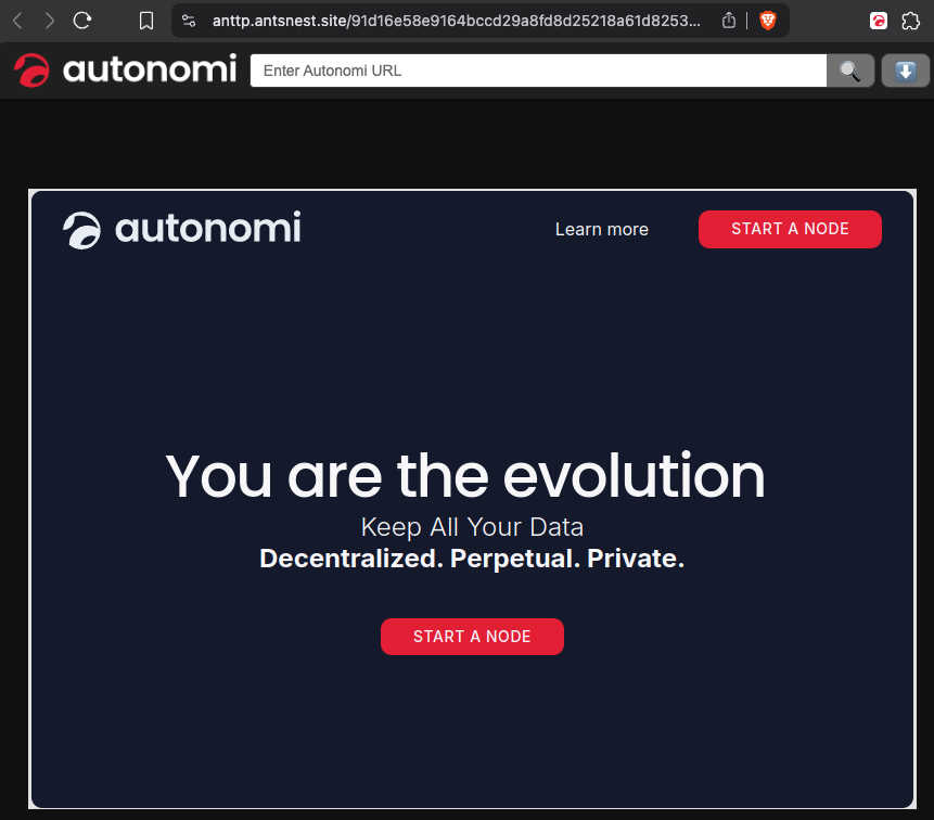 After entering a valid Autonomi URL and clicking "Browse", you will see the results like this: