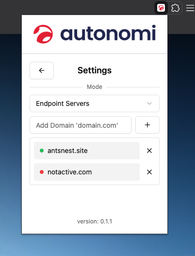 To add a new endpoint server, enter the base domain of a valid server into the extension.
